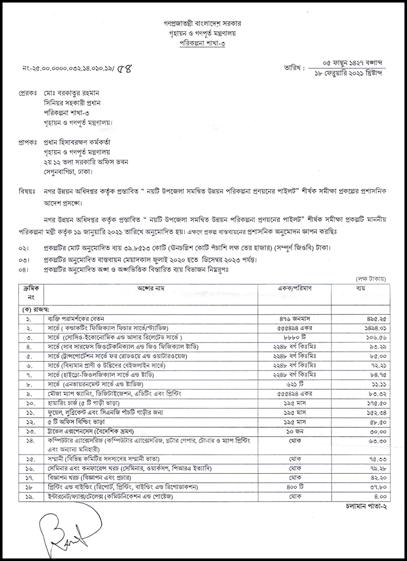 অনুমোদিত ডিপিপি মোতাবেক প্যাকেজ অনুযায়ী প্রকল্প পরিচিতি